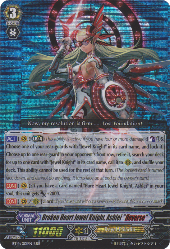 [CONT](V):If you have a card named "Pure Heart Jewel Knight, Ashlei" in your soul, this unit gets [Power]+2000.